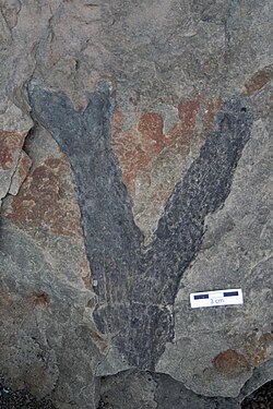 The Vertebraria root system exhibits distinctive vertebrate-like segmentation. Exceptionally preserved vascular bundles visible in cross-section.